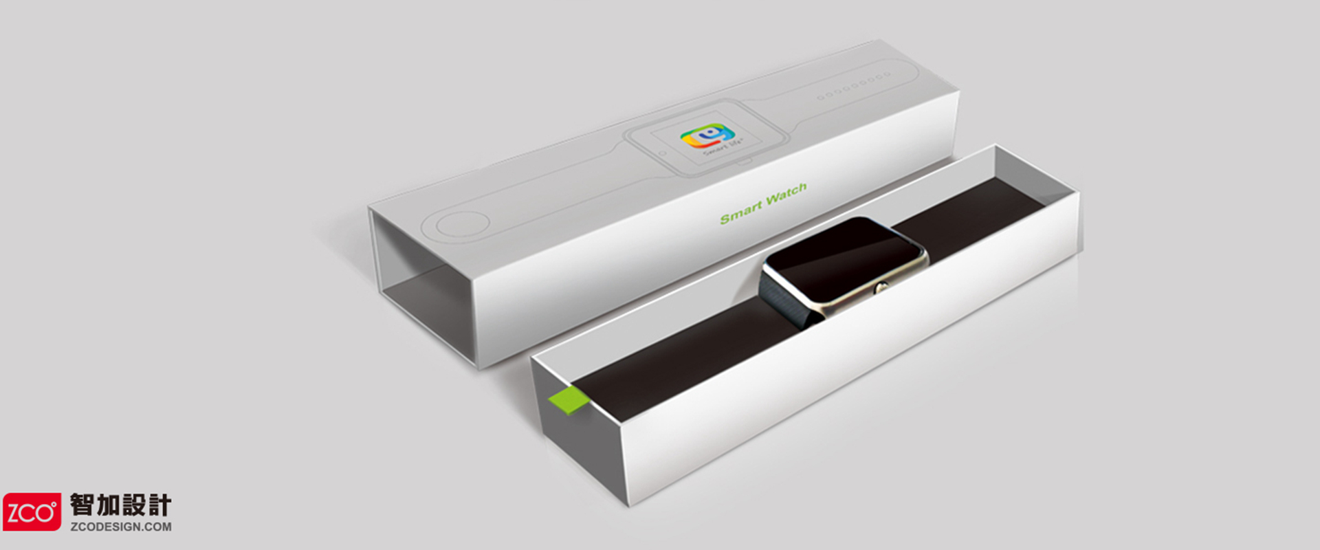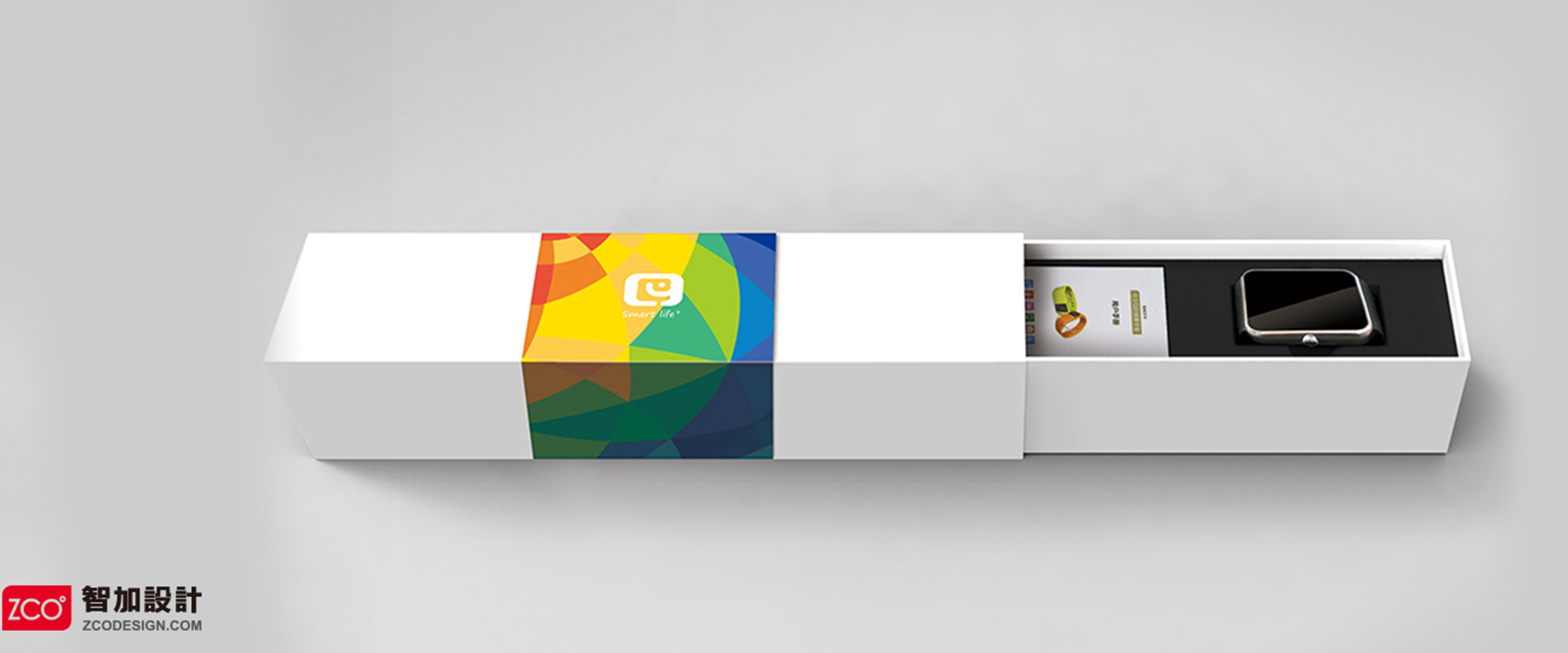 此包裝以智能手表攤開的擺放形式來做的一個抽拉式包裝設計,抽拉的開啟方式增加了一定的趣味性。整體設計簡潔大方,主題明確。