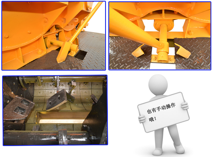 卸料系統由卸料門、氣缸或者是液壓缸等機構組成,有三種結構:液壓控制、氣動控制、手動控制。卸料門安裝在攪拌機底部,通過氣缸或者液壓缸,實現機動卸料,在卸料門上方左右各安裝一個限位開關,以控制卸料門的開閉位置,通過調節密封條的位置可保證卸料門密封。